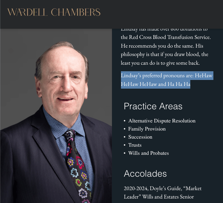A silk who said his preferred pronouns are ‘HeHaw HeHaw Ha Ha Ha’ and questioned the use of gender-neutral titles in court has been sacked as chair of one of the NSW Bar’s central committees.